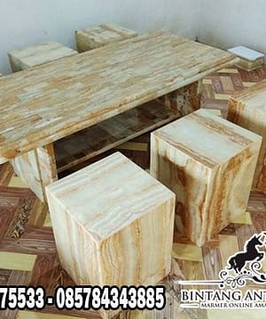 Banyak sekali jenis batuan yang dapat di buat sebagai meja tamu, meja makan, maupun meja taman. Meja dapat di buat oleh pengrajin yang sudah ahli dalam pembuatan batuan alam , jenis batu alam yang kami buat untuk meja tamu ini adalah jenis Batu Onyx, batu onyx memang mempunyai harga jual yang lumayan tinggi di banding dengan batu marmer , karena batu onyx ini mempunyai keunggulan yang ber beda dengan jenis batuan yang lain yaitu dapat tembus cahaya.