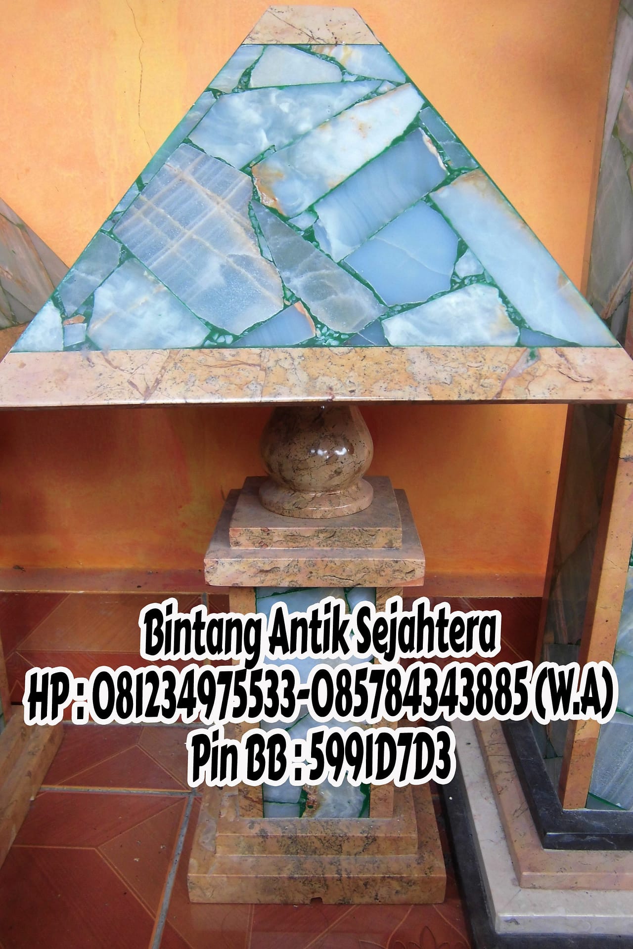 Saya akan menjelaskan sedikit tentang kap lampu yang kami posting kali ini , kap lampu yang satu ini mempunyai bentuk yang sangat eksotik dengan bahan batuan alam asli yaitu marmer dengan kombinasi onix serta batu hijau murni asli dari Tulungagung sehingga kwalitas barang pun sangat istimewa , dalam pengerjaan kap lampu ini di buat oleh pengrajin Tulungagung asli yang sudah mahir dalam bidang kerajinan marmer untuk menjadikan suatu kerajinan yang sangat memuaskan konsumen . Kap lampu Mix Marmer ini sangat cocok untuk suatu ruangan tersendiri misalkan sudut-sudut ruang tamu ataupun kamar tidur untuk menambah suatu kesan keharmonisan pada rumah tangga , untuk itu tidak salah lagi jika memilih kap lampu cantik ini untuk menjadikan hiasan rumah agar lebih istimewa dan menawan pada suatu ruangan .