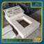 Kijing makam marmer pada gambar menampilkan desain persegi panjang dengan lubang tengah yang berfungsi sebagai area makam sesuai standar pemakaman. Pengrajin membentuk setiap bagian secara presisi, menegaskan sudut-sudut kijing, dan memoles permukaannya hingga halus menggunakan proses finishing berkualitas tinggi.