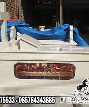 Sedangkan model makam marmer ini karena untuk yang ber agama kristen. UntuK itu kami memakai foto perjamuan sesuai pesanan customer.